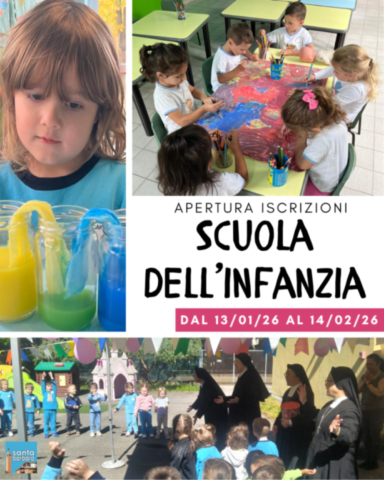 Le iscrizioni alla Scuola per l’infanzia per l’Anno Scolastico 2026-2027 aprono Martedì 13 Gennaio e chiudono Sabato 14 Febbraio 2026.